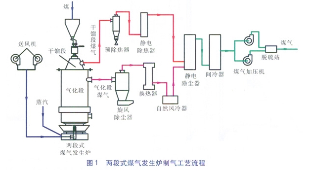 两段式煤气发生炉结构特点及工艺流程