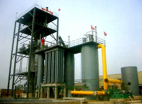 煤气被冷却至35-45℃左右。下段煤气经旋风除尘器除尘,除尘后的温度大约在450-550℃。继而进入余热换热器,在给煤气降温的同时回收煤气显热,